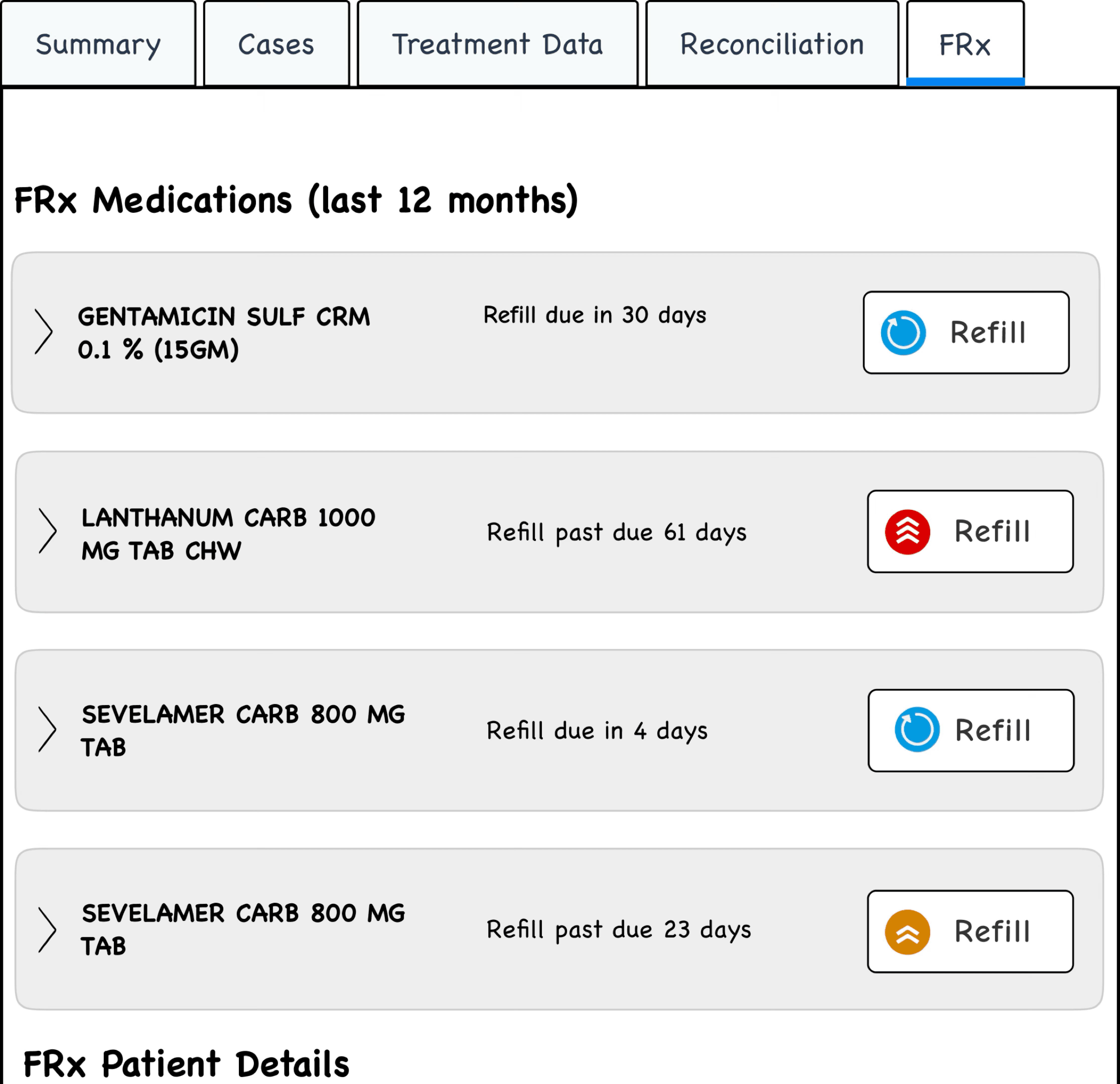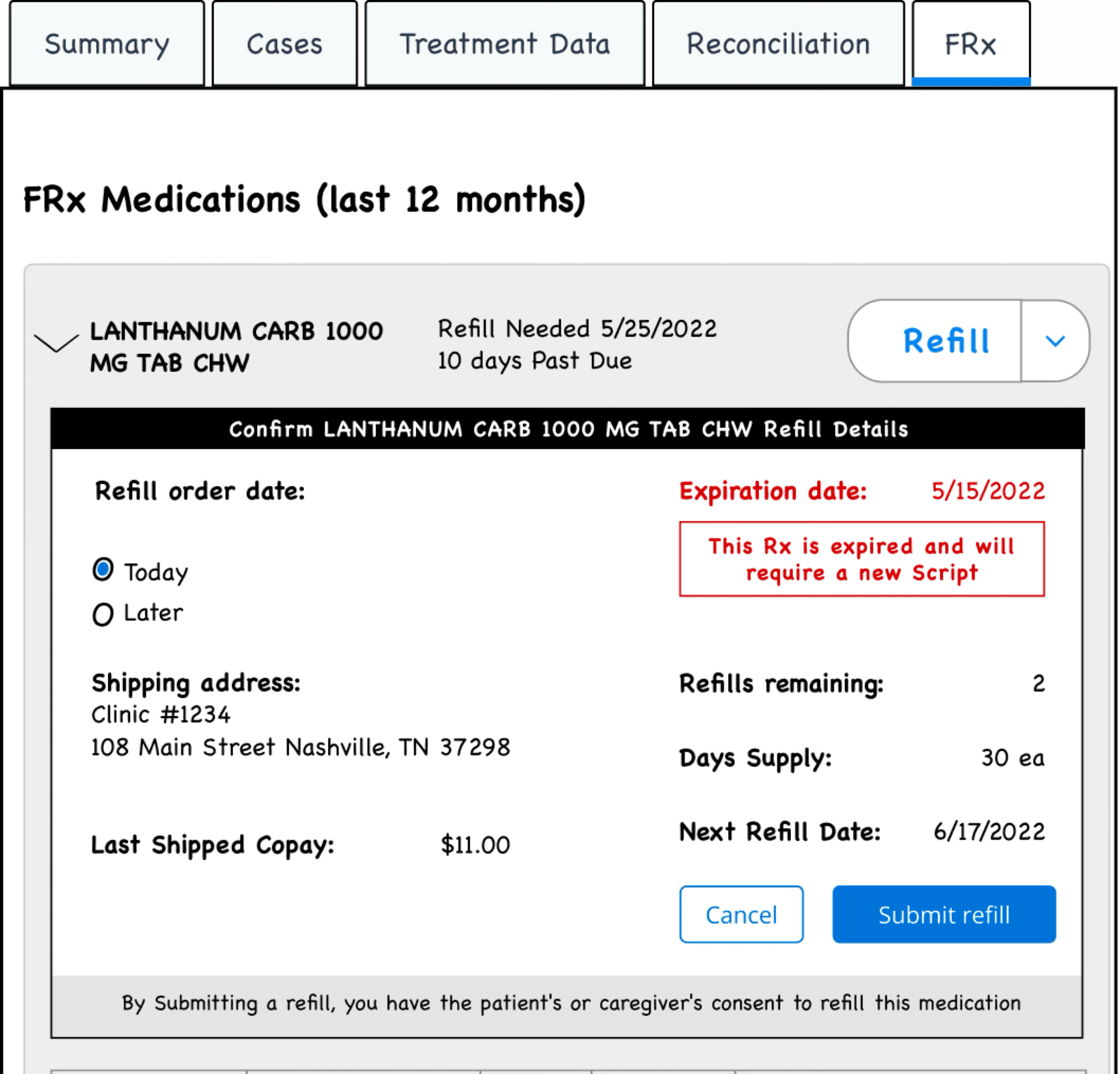 We organized every data point in the refill flow into a handful of familiar, clinician‑friendly objects—Patient, Prescription, Address, Shipment, etc.—mirroring the way care teams already think. Key attributes for each object surface first; secondary details stay tucked behind a click, using progressive disclosure to keep screens calm yet powerful. The result: clinicians see exactly what they need at a glance, can dive deeper in one step, and never feel buried by data.