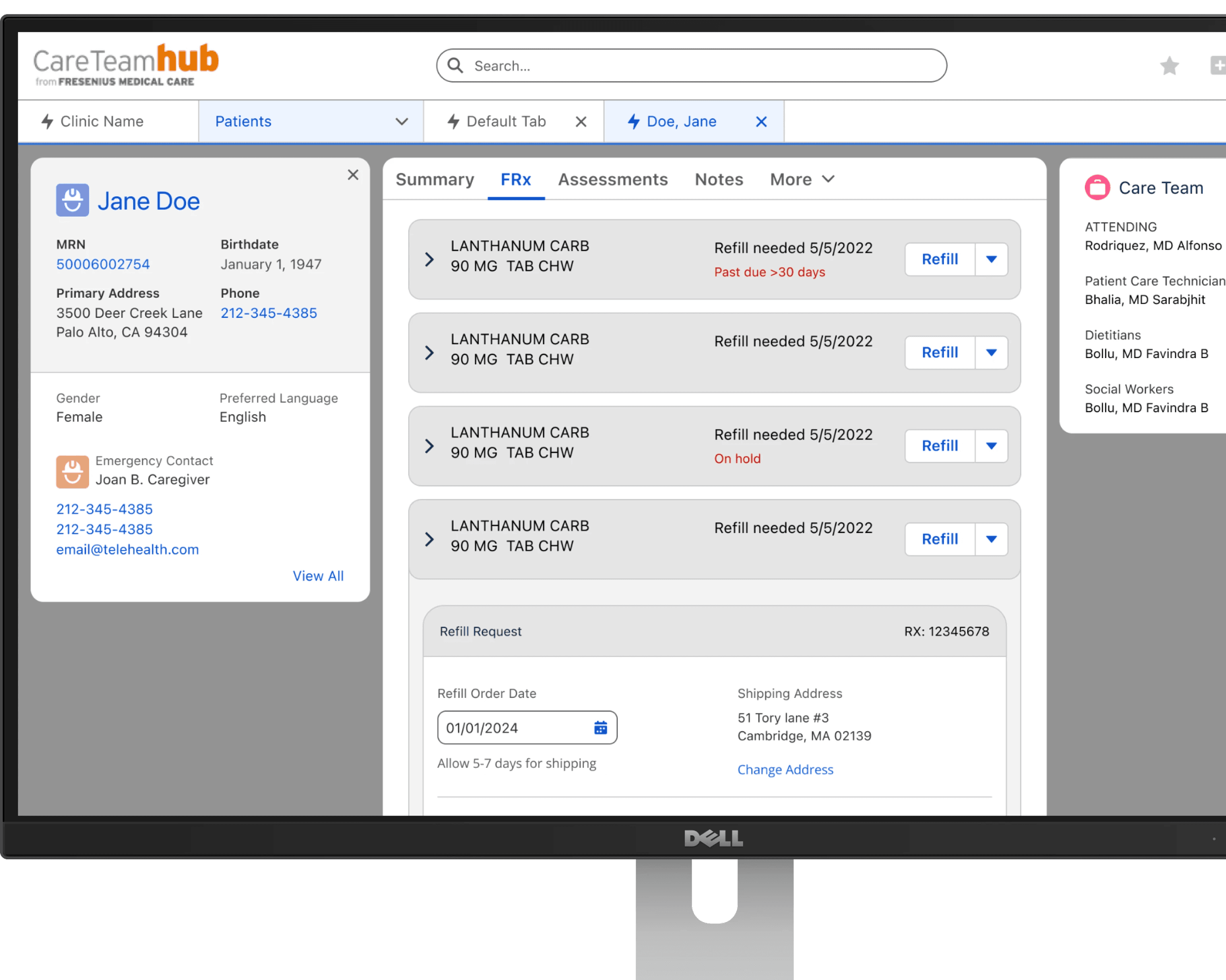Care teams regularly needed to switch shipping between clinic, patient home, and temporary/vacation addresses. We added a unified address selector with a confirmation step to prevent mis-shipments.